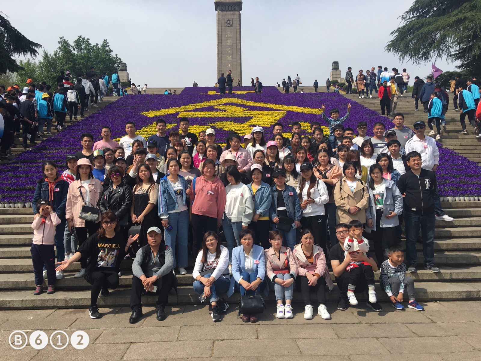 用過午餐后,我們去了雨花臺風景名勝區,這里是當年革命烈士被殘害的地方,在紀念碑的階梯上用鮮花鋪成兩個大字“懷念” ,寓意來悼念革命烈士。